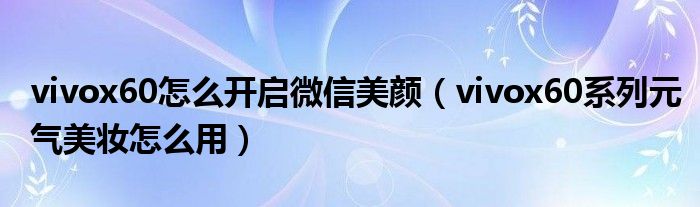 vivox60怎么開啟微信美顏(vivox60系列元氣美妝怎么用)