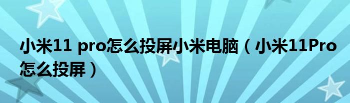 小米11 pro怎么投屏小米電腦(小米11Pro怎么投屏)