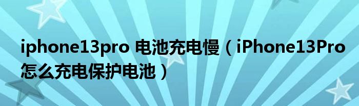 iphone13pro 電池充電慢(iPhone13Pro怎么充電保護電池)