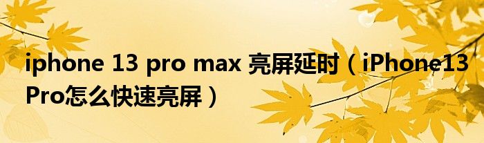 iphone 13 pro max 亮屏延時(iPhone13Pro怎么快速亮屏)