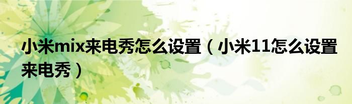 小米mix來電秀怎么設置(小米11怎么設置來電秀)