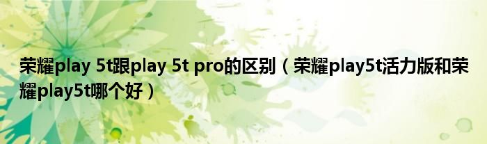 榮耀play 5t跟play 5t pro的區別(榮耀play5t活力版和榮耀play5t哪個好)