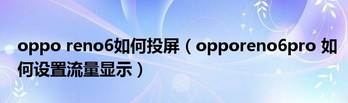oppo reno6如何投屏(opporeno6pro 如何設置流量顯示)
