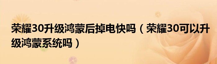 榮耀30升級鴻蒙后掉電快嗎(榮耀30可以升級鴻蒙系統嗎)