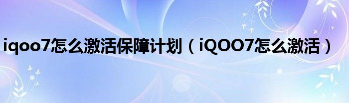 iqoo7怎么激活保障計劃(iQOO7怎么激活)