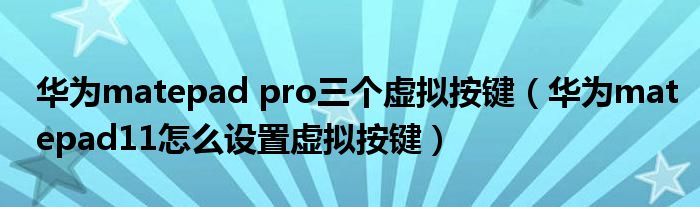 華為matepad pro三個虛擬按鍵(華為matepad11怎么設置虛擬按鍵)