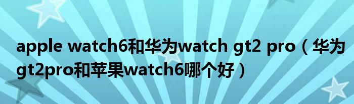 apple watch6和華為watch gt2 pro(華為gt2pro和蘋果watch6哪個好)