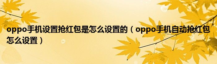 oppo手機設置搶紅包是怎么設置的(oppo手機自動搶紅包怎么設置)