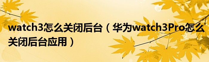 watch3怎么關閉后臺(華為watch3Pro怎么關閉后臺應用)