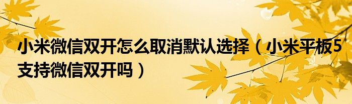 小米微信雙開怎么取消默認選擇(小米平板5支持微信雙開嗎)