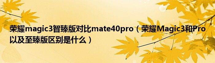 榮耀magic3智臻版對比mate40pro(榮耀Magic3和Pro以及至臻版區別是什么)