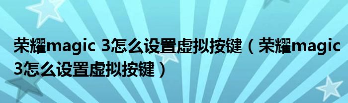 榮耀magic 3怎么設置虛擬按鍵(榮耀magic3怎么設置虛擬按鍵)