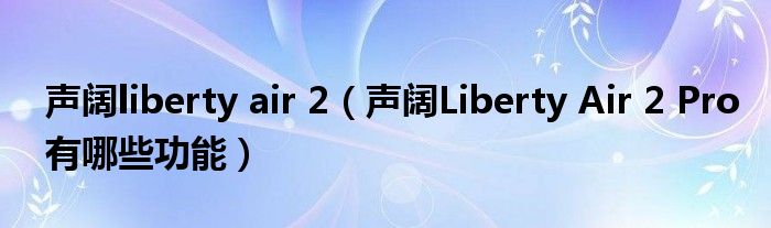 導讀 大家好,小迷為大家解答以上聲闊liberty air 2,聲闊Liberty Air 2 Pro有哪些功能的問題,也是到網上收集了關于聲闊liberty air 2,