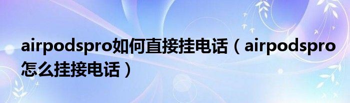 airpodspro如何直接掛電話(airpodspro怎么掛接電話)