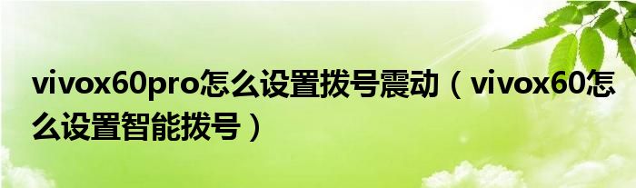 vivox60pro怎么設置撥號震動(vivox60怎么設置智能撥號)