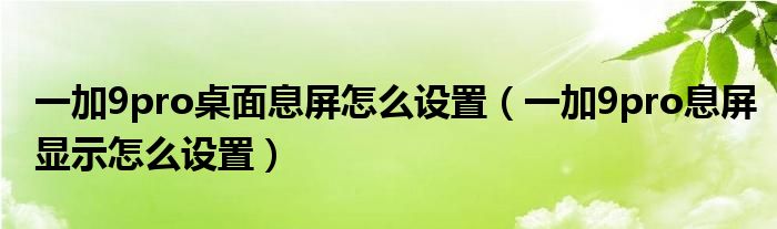 一加9pro桌面息屏怎么設置(一加9pro息屏顯示怎么設置)
