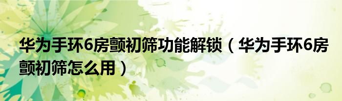 華為手環6房顫初篩功能解鎖(華為手環6房顫初篩怎么用)