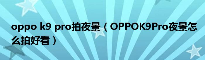 oppo k9 pro拍夜景(OPPOK9Pro夜景怎么拍好看)