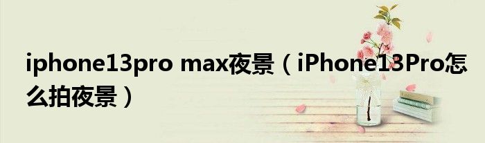 iphone13pro max夜景(iPhone13Pro怎么拍夜景)
