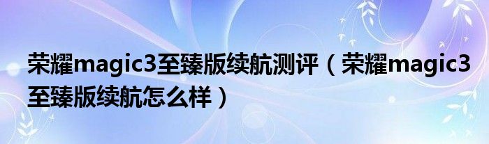 榮耀magic3至臻版續航測評(榮耀magic3至臻版續航怎么樣)