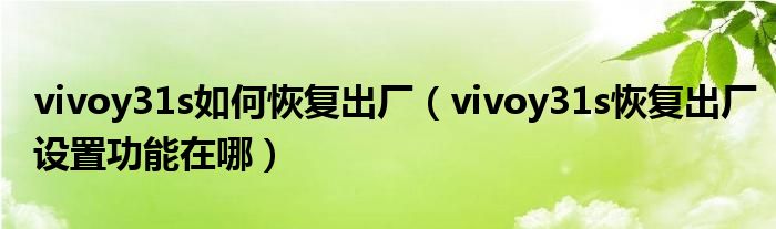 vivoy31s如何恢復出廠(vivoy31s恢復出廠設置功能在哪)