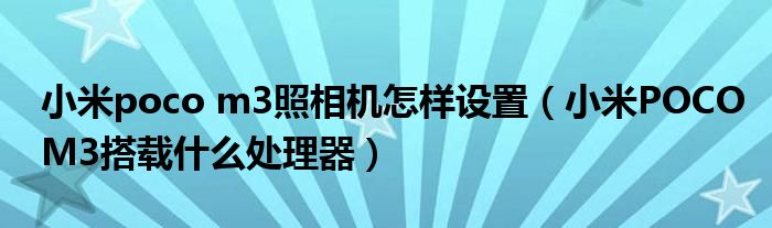 小米poco m3照相機怎樣設置(小米POCOM3搭載什么處理器)
