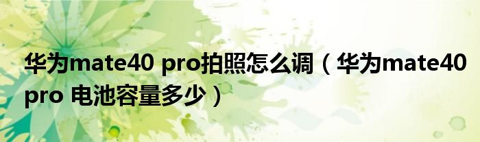華為mate40 pro拍照怎么調(華為mate40pro 電池容量多少)