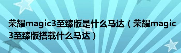 榮耀magic3至臻版是什么馬達(榮耀magic3至臻版搭載什么馬達)
