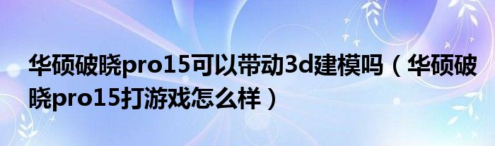 華碩破曉pro15可以帶動3d建模嗎(華碩破曉pro15打游戲怎么樣)