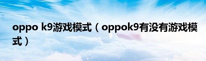 oppo k9游戲模式(oppok9有沒有游戲模式)