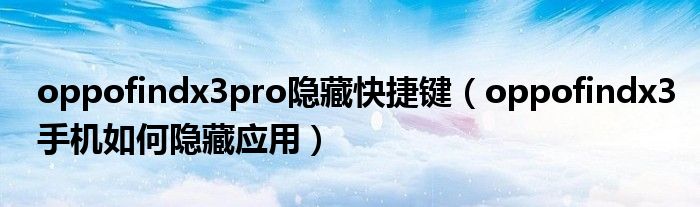 oppofindx3pro隱藏快捷鍵(oppofindx3手機如何隱藏應用)