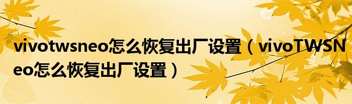 vivotwsneo怎么恢復出廠設置(vivoTWSNeo怎么恢復出廠設置)