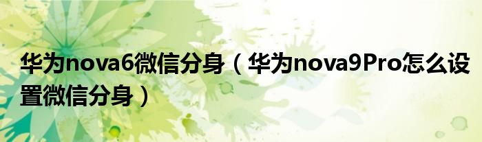華為nova6微信分身(華為nova9Pro怎么設置微信分身)