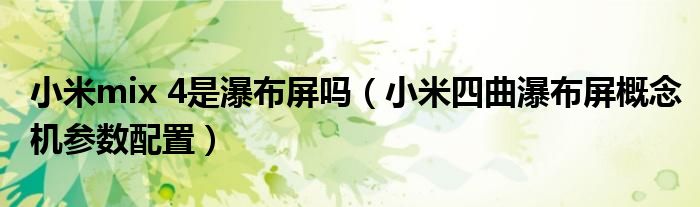 大家好,小迷為大家解答以上小米mix 4是瀑布屏嗎,小米四曲瀑布屏概念機參數配置的問題,也是到網上收集了關于小米mix 4是瀑布屏嗎,小米四曲瀑布屏概念機參數配置的信息,那么下面分享給大家一起了解下吧。