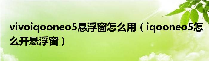 vivoiqooneo5懸浮窗怎么用(iqooneo5怎么開懸浮窗)