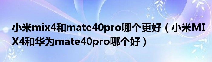 小米mix4和mate40pro哪個更好(小米MIX4和華為mate40pro哪個好)