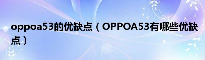 oppoa53的優缺點(OPPOA53有哪些優缺點)