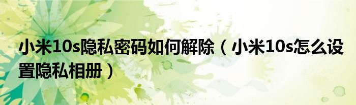 小米10s隱私密碼如何解除(小米10s怎么設置隱私相冊)