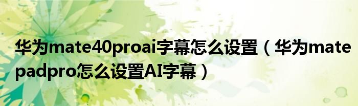 華為mate40proai字幕怎么設置(華為matepadpro怎么設置AI字幕)