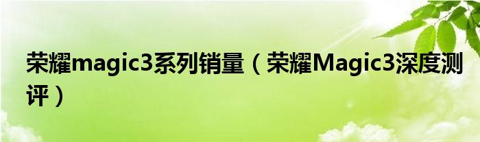 榮耀magic3系列銷量(榮耀Magic3深度測評)