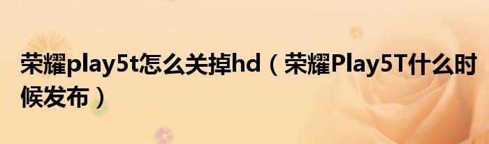 榮耀play5t怎么關掉hd(榮耀Play5T什么時候發布)