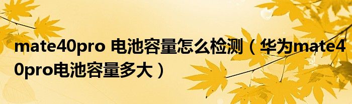 mate40pro 電池容量怎么檢測(華為mate40pro電池容量多大)
