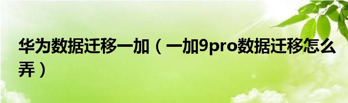 華為數據遷移一加(一加9pro數據遷移怎么弄)