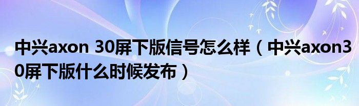 中興axon 30屏下版信號怎么樣(中興axon30屏下版什么時候發布)