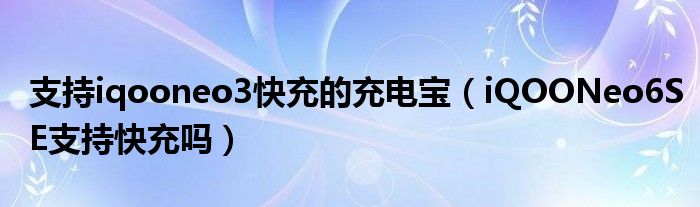 支持iqooneo3快充的充電寶(iQOONeo6SE支持快充嗎)