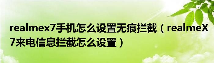 realmex7手機怎么設置無痕攔截(realmeX7來電信息攔截怎么設置)