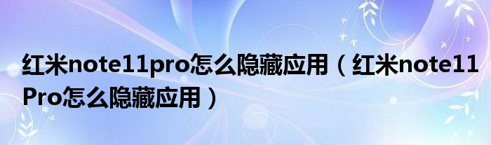 紅米note11pro怎么隱藏應用(紅米note11Pro怎么隱藏應用)