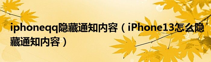 iphoneqq隱藏通知內容(iPhone13怎么隱藏通知內容)