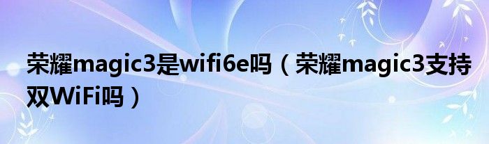 榮耀magic3是wifi6e嗎(榮耀magic3支持雙WiFi嗎)