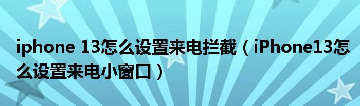 iphone 13怎么設置來電攔截(iPhone13怎么設置來電小窗口)